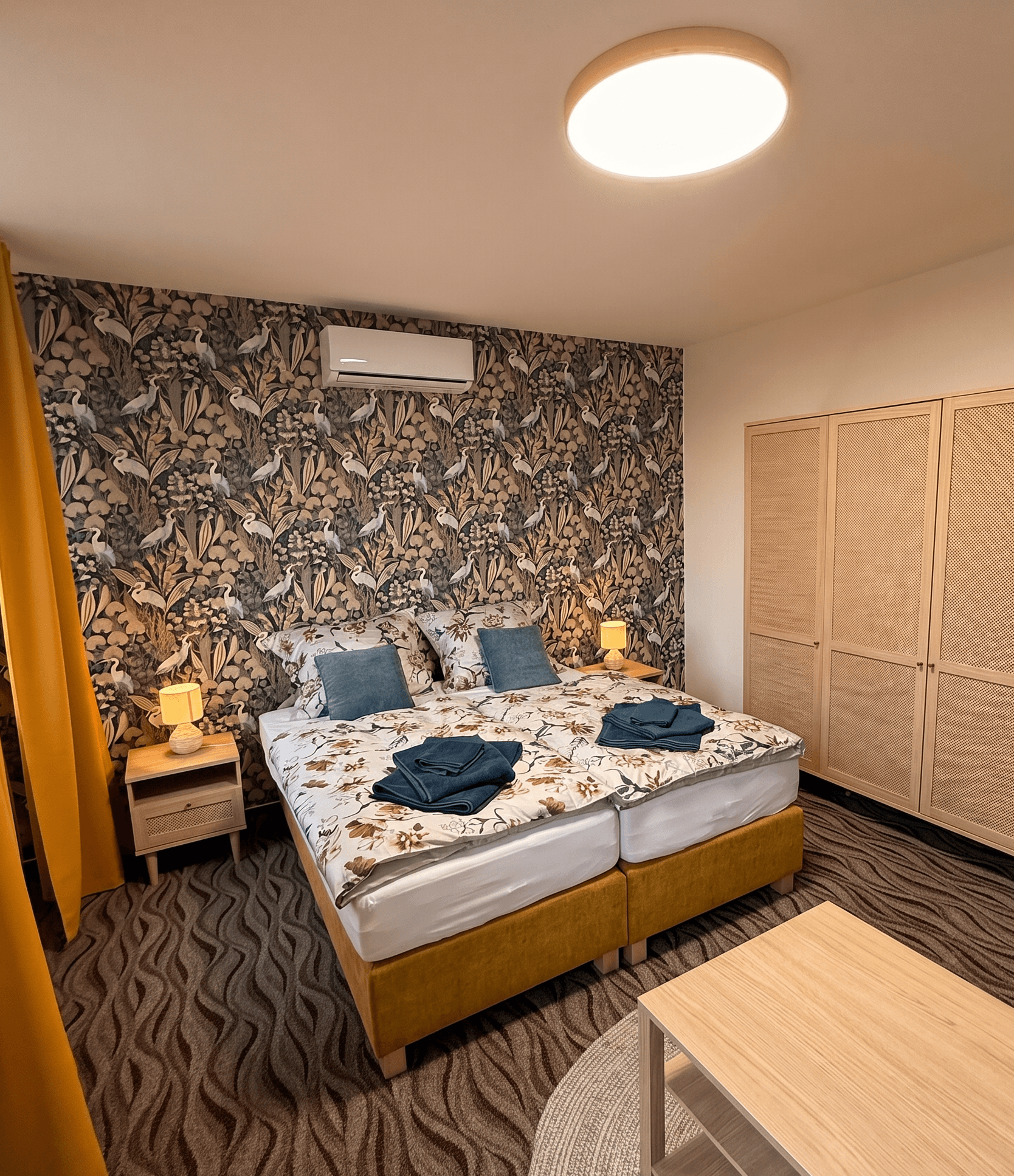 Každý z pokojů je vybaven manželskou postelí, dostatkem úložného prostoru, stylovou koupelnou a chytrými technologiemi, které zajišťují pohodlný a bezstarostný pobyt. Moderní zařízení a nadčasový design vytvářejí příjemnou atmosféru pro víkendové návštěvy i delší pobyty.